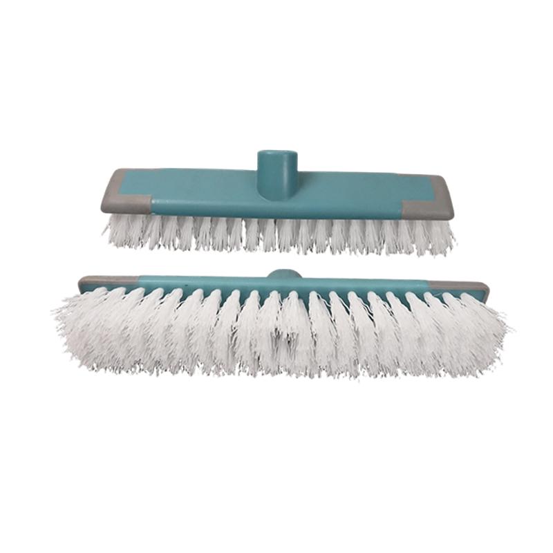 This light turquoise long-handle scrub brush head is built for deep cleaning. Its dense, rigid white bristles penetrate tile grout and floor textures to effectively remove kitchen grease, bathroom soap scum, and other tough stains. The gray buffer strip along the edge prevents scratches to walls and glazed tiles during cleaning. With a universal interface that fits most cleaning poles, it installs securely, making it an essential tool for heavy-duty cleaning in bathrooms, kitchens, balconies, and more.