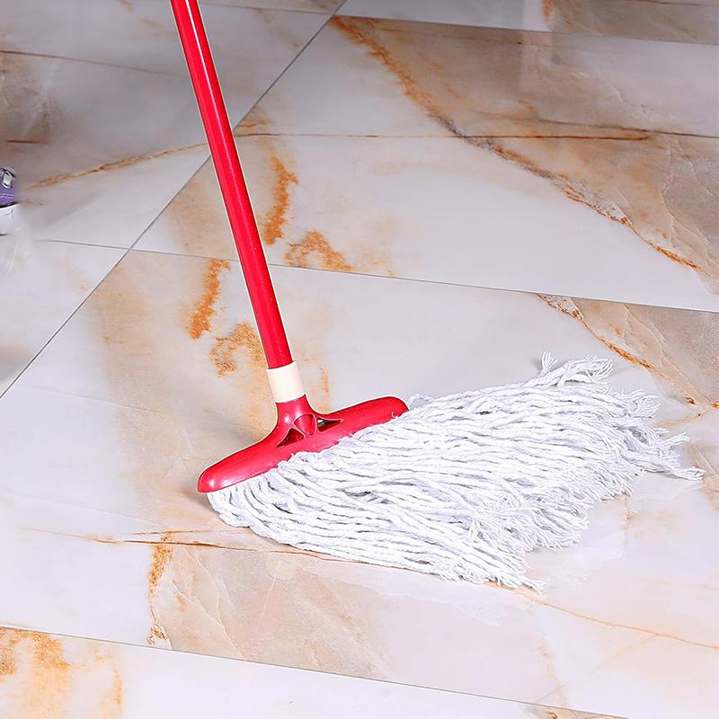 This cotton cord mop features a white cotton mop head and a red plastic connecting component. The cotton material has excellent water absorption and cleaning ability, effectively trapping dust and stains on the floor. The red part not only securely connects the mop head to the handle but also makes the overall appearance more eye-catching. It is suitable for cleaning hard floors in various places such as homes, offices, etc., and can easily meet daily cleaning needs.