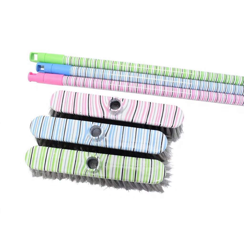 Daily Use Cleaning Broom Set Rubber Coated Plastic Brush Head 22mm Diameter Iron Rod 1.2m Length for