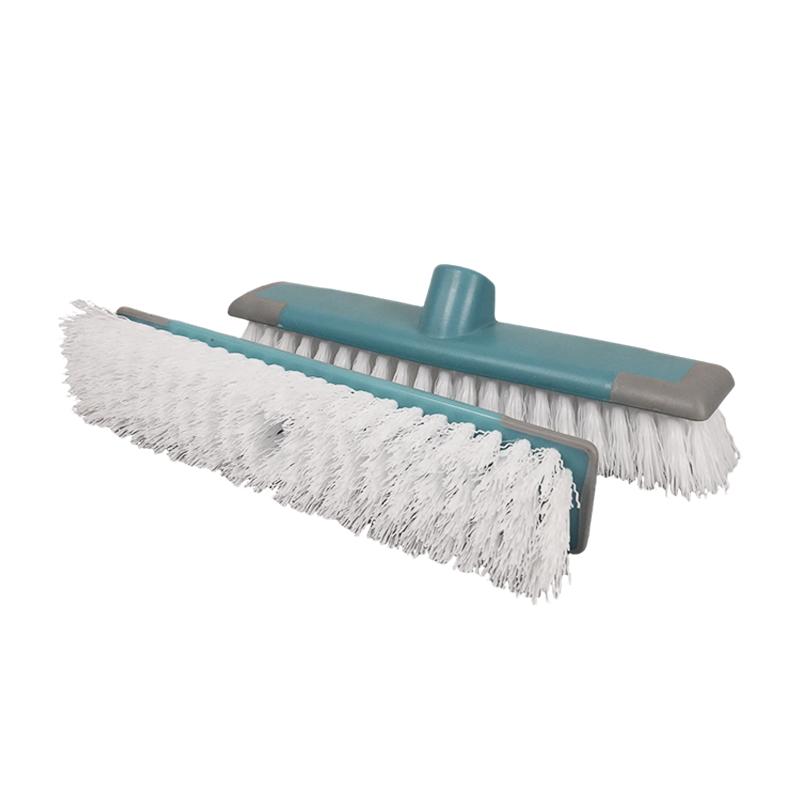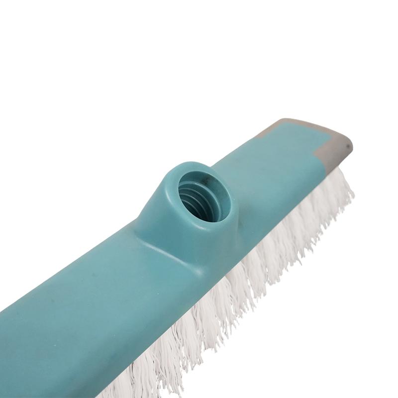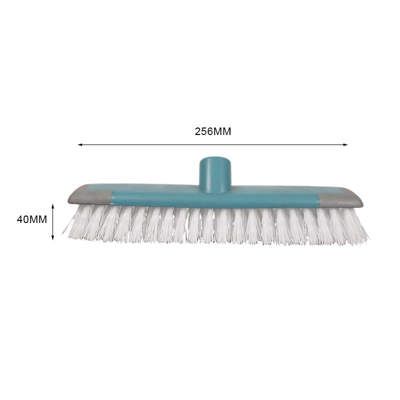 This light turquoise long-handle scrub brush head is built for deep cleaning. Its dense, rigid white bristles penetrate tile grout and floor textures to effectively remove kitchen grease, bathroom soap scum, and other tough stains. The gray buffer strip along the edge prevents scratches to walls and glazed tiles during cleaning. With a universal interface that fits most cleaning poles, it installs securely, making it an essential tool for heavy-duty cleaning in bathrooms, kitchens, balconies, and more.