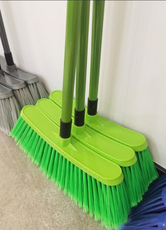 These brooms are made of high-quality plastic, which is both sturdy and durable. The brush heads are wide and the bristles are dense, enabling them to thoroughly clean dust, hair, and debris over a large area, with high cleaning efficiency. The handle is of an appropriate length and conforms to ergonomic principles, providing a comfortable grip and reducing the burden of bending over. The colors are diverse, including energetic red, refreshing green, etc., meeting various aesthetic preferences. They are suitable for various places such as homes, offices, and shopping malls, and are excellent assistants for daily cleaning.